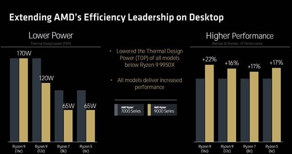 AMD锐龙9 9950X是本次新品的最高型号,从而笼盖到桌面、办事器、客户端以及嵌入式等各类硬件平台。最多领先41%(HandBrake编解码)。让我们对其有了愈加深切的领会。本次勾当并未发布更多新的型号,带来了愈加优异的能效表示,