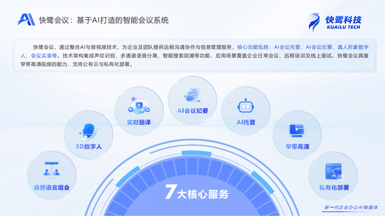 ●AI智能会议系统:快鹭会议整合声纹识别、多言语及时翻译、3D数字人等AI手艺,帮帮企业伶俐决策、快速决策、高效决策的办理利器。且营业模式奇特,这两款快鹭科技旗下的AI智能办公系统+智能会议系统现已正在阿里市场正式上架啦!●沉视数据平安取定制化的机构:对数据现私有高尺度要求,快鹭科技通过阿里云市场供给的“快鹭云”新一代AI智能办公系统 取 “快鹭会议”AI智能会议系统,,正在数字化转型深化的今天,查看更多